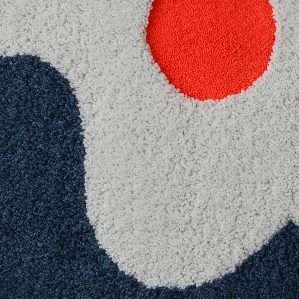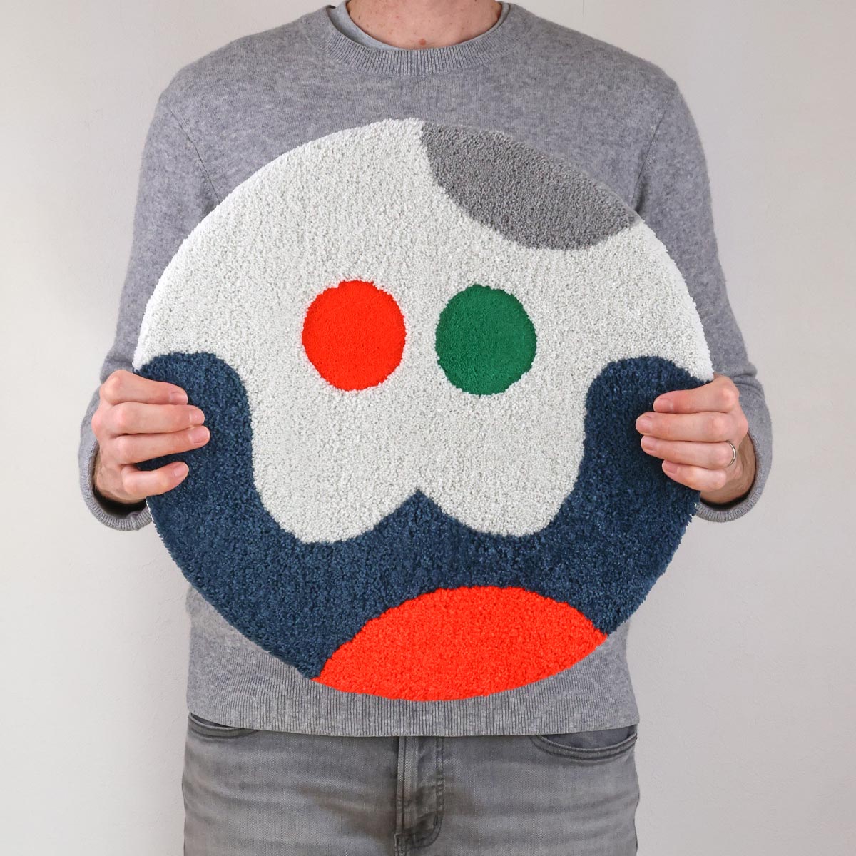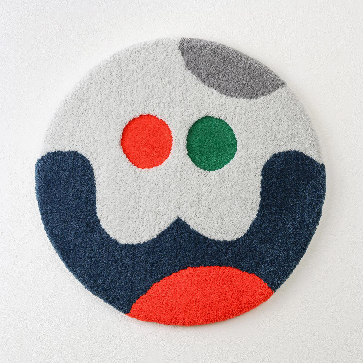このラグは壁掛け用の吊り下げ機構を備えているが、必要に応じて機能的なアートとして床に置くこともできる。