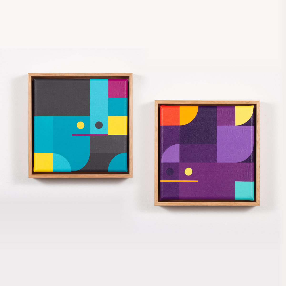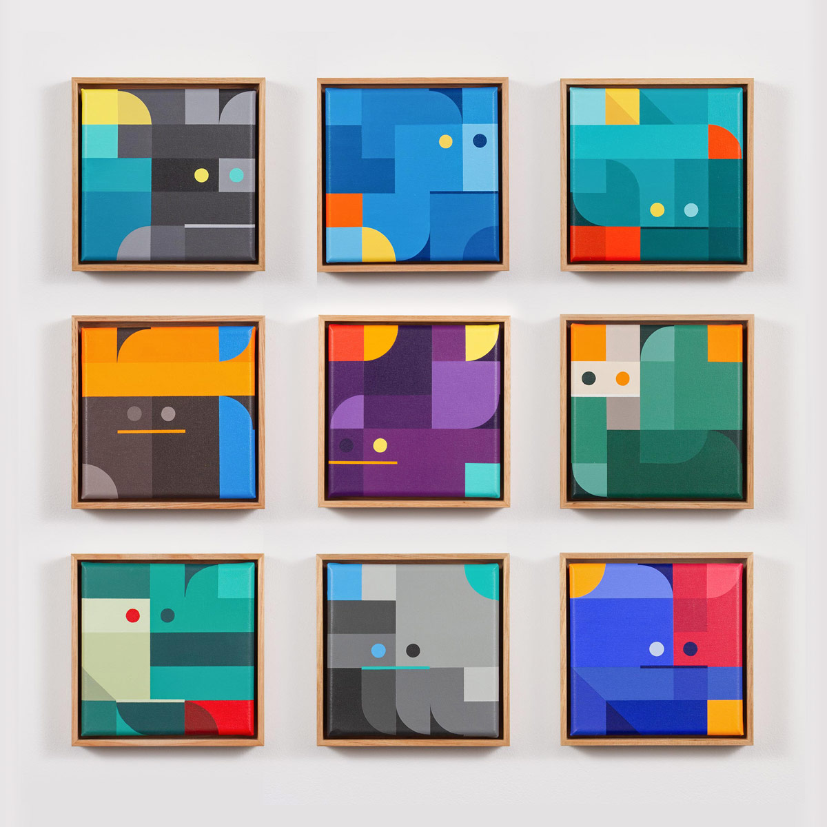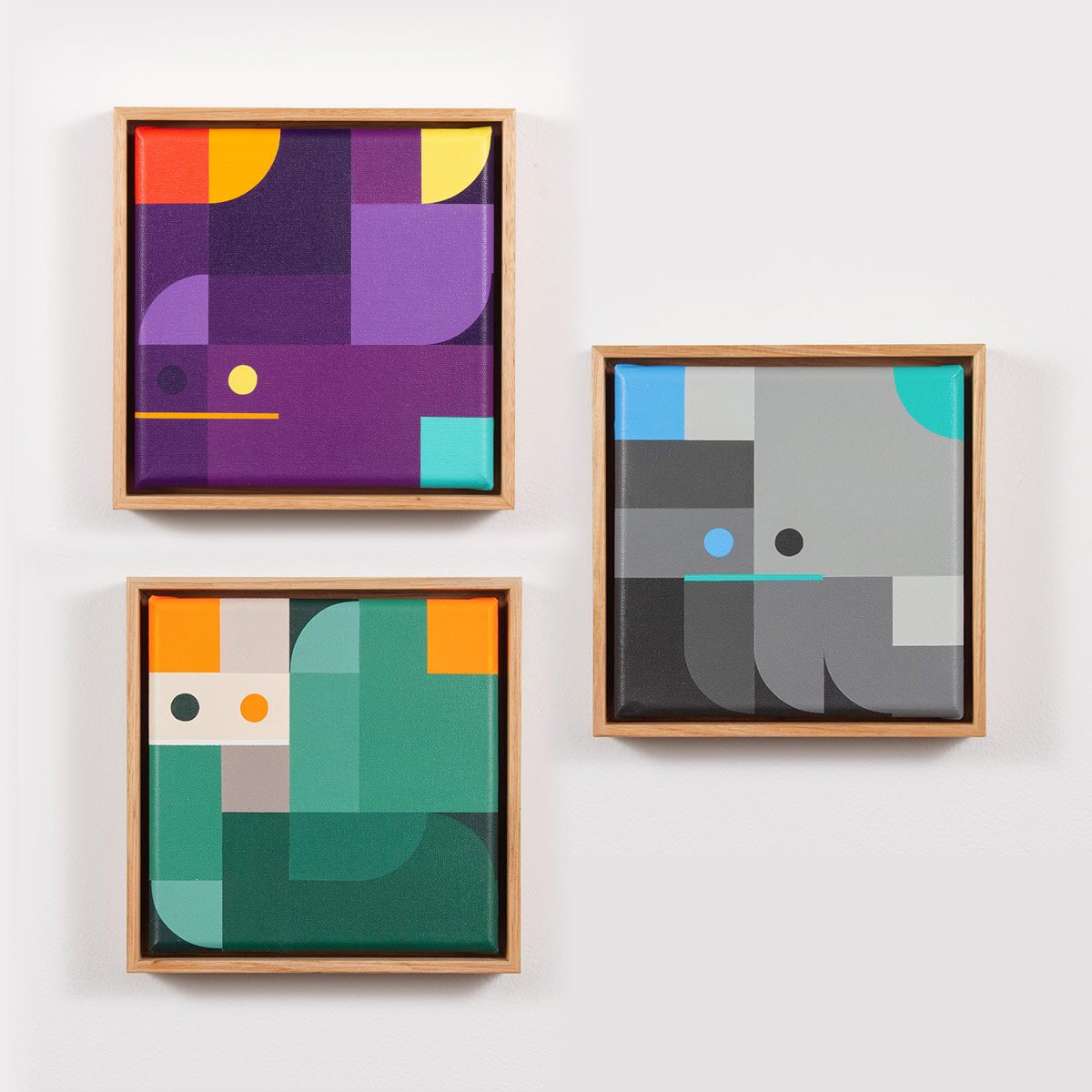 グール・ガイがキャンバスにアクリルで描いた幾何学的抽象画の謎めいたコレクション。各キャンバスにはサイン、エディションナンバーが入り、タスマニアン・オークで額装されている。