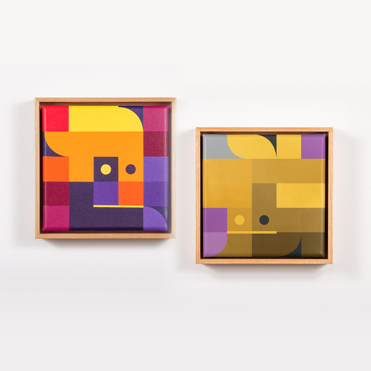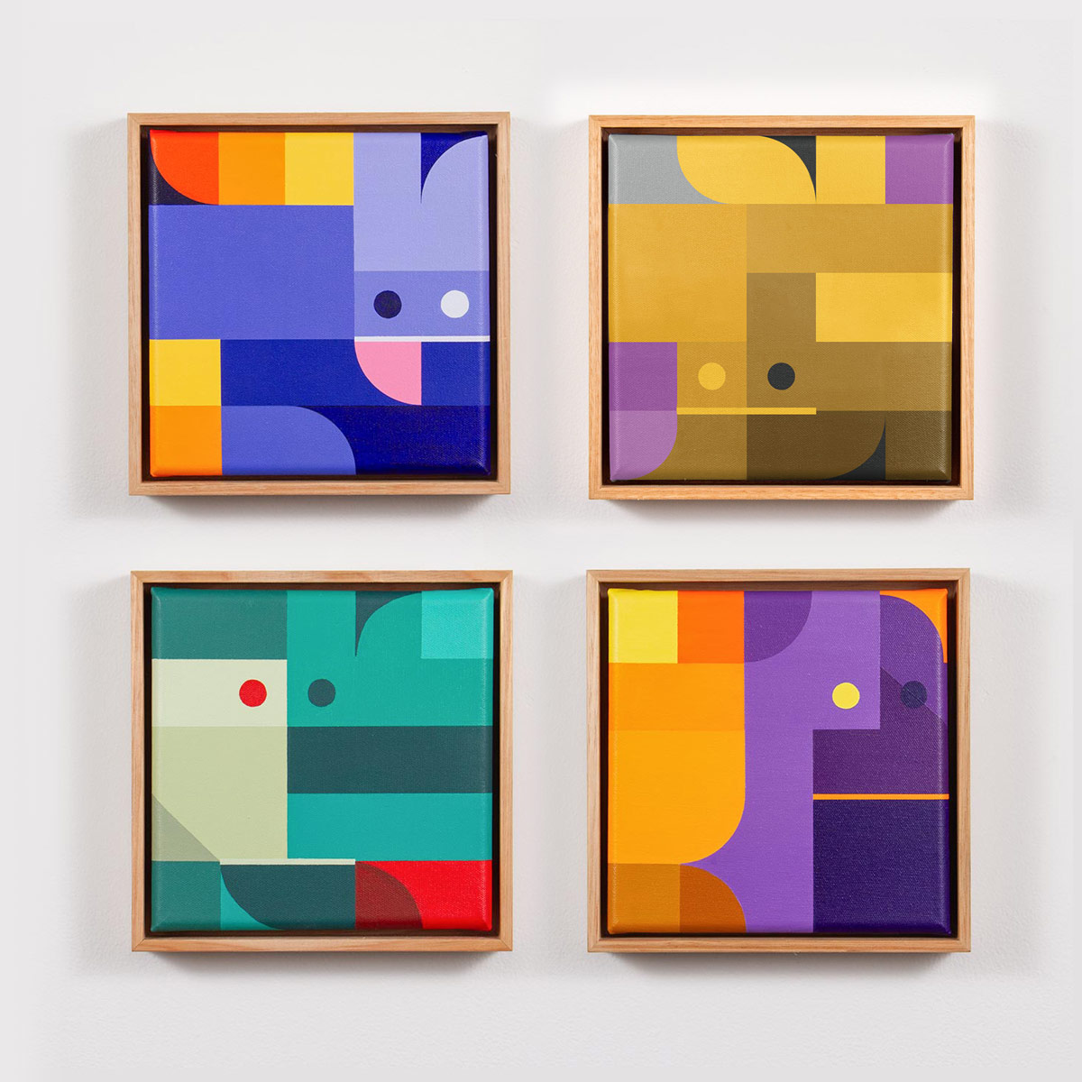 グール・ガイがキャンバスにアクリルで描いた幾何学的抽象画の謎めいたコレクション。各キャンバスにはサイン、エディションナンバーが入り、タスマニアン・オークで額装されている。