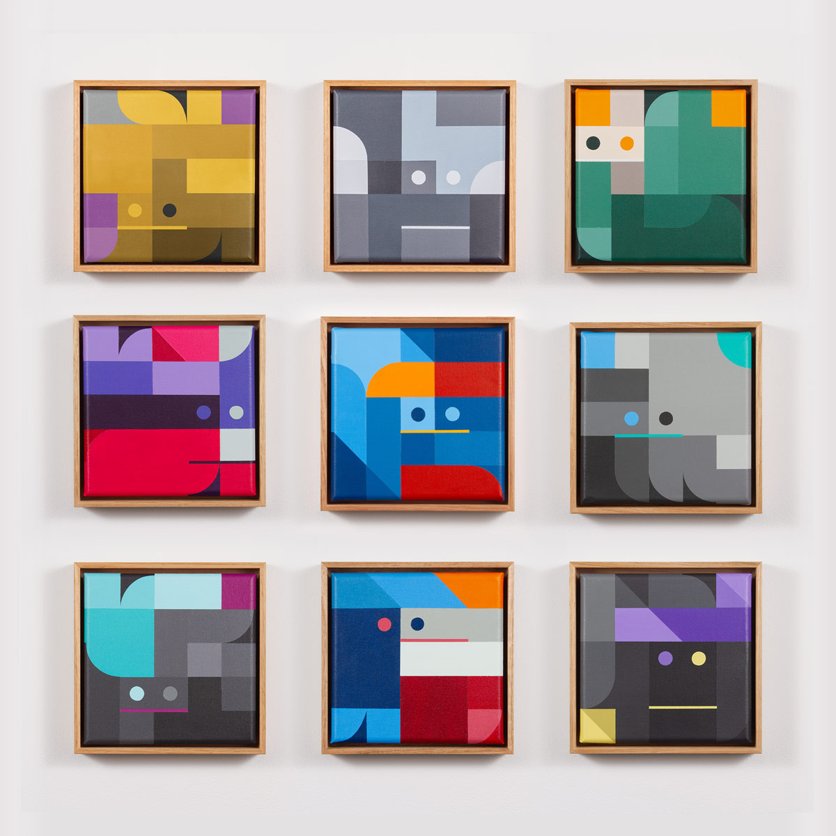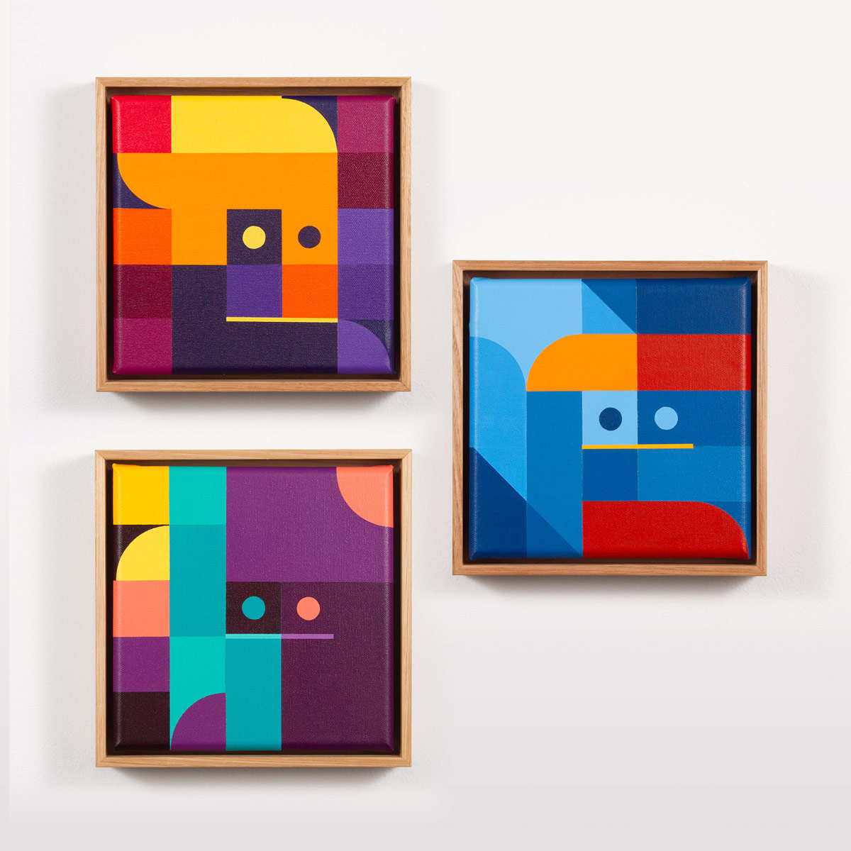 This enigmatic collection of geometric abstractions are painted with acrylic on canvas by Ghoul Guy. Each canvas is signed, numbered, and framed in Tasmanian Oak.
