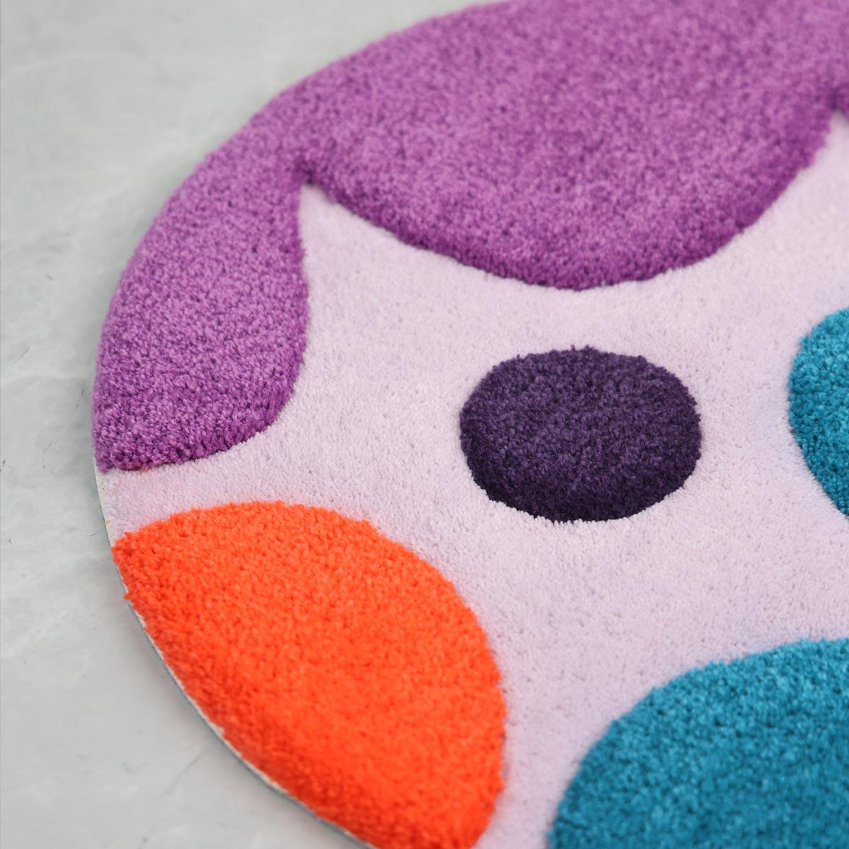 The Magic Carpet Collection is a series of 50 hand-tufted rugs, each measuring approximately 40cm (15.7”) in diameter. Part of a ten year project to create 1,000 artworks, this collection marks the eighth milestone (#351–#400), continuing the theme of anthropomorphism first explored in Ghoul Guy’s Morph series.